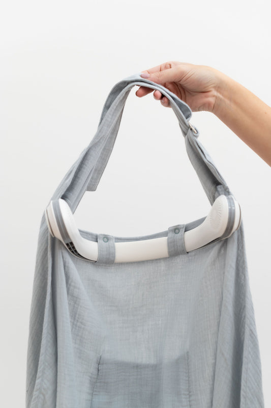 Our nursing cooling cover is equipped with a built-in bladeless fan to keep both mum and baby cool during breastfeeding, even on the hottest days!
